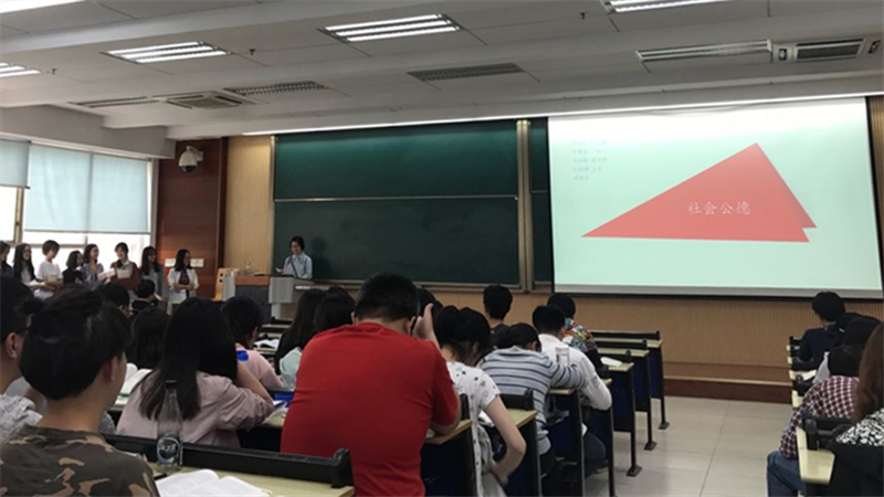 肖云老师以“公共生活需要公共秩序”为主题,通过多个案例,详细阐释了诚信的重要性以及维护公共秩序和构建诚信社会的必要性。课堂上,建筑城规学院2014级的同学们展开了热烈讨论。在肖老师的引导下,部分学生代表也走上讲台,展示了精心准备的PPT,发表了自己的认识和见解。