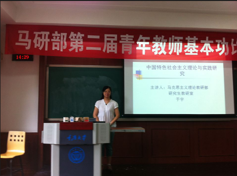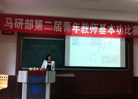 为了进一步提高青年教师讲课水平,鼓励教师更好地研究教学方法,提高课堂教学质量,2015618日,马研部第二届青年教师基本功比赛在A区五教学楼109室举行,马研部教授委员会成员、研究生教学部、本科生教学部负责人担任评委,部分教师观看了比赛。