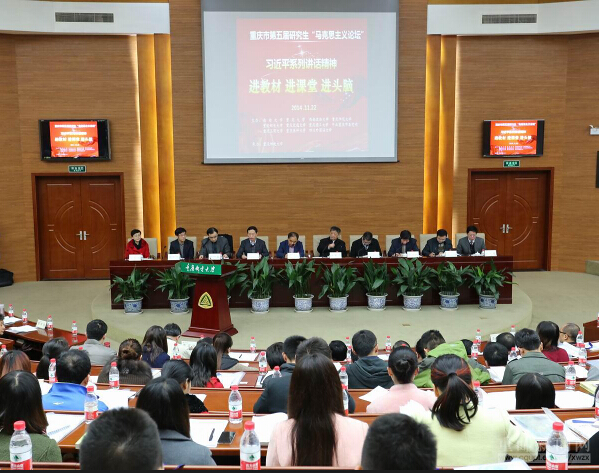 2014年11月22日,重庆市第五届研究生“马克思主义论坛”在重庆邮电大学举行,来自我市10所高校近200名马克思主义学科的研究生及教师代表参会。此次论坛以“习近平系列讲话精神进教材、进课堂、进头脑”为主题,由西南大学、色戒