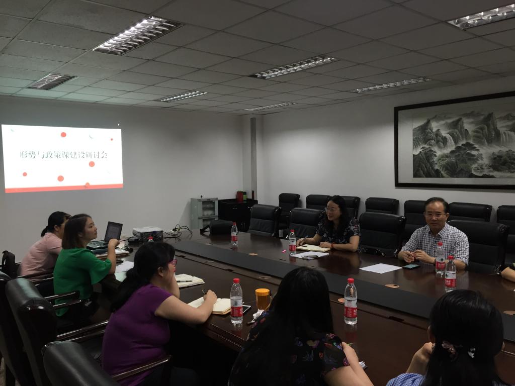 院长肖铁岩、”形式与政策课”四个专题组组长、专题组教学秘书参会研讨。
