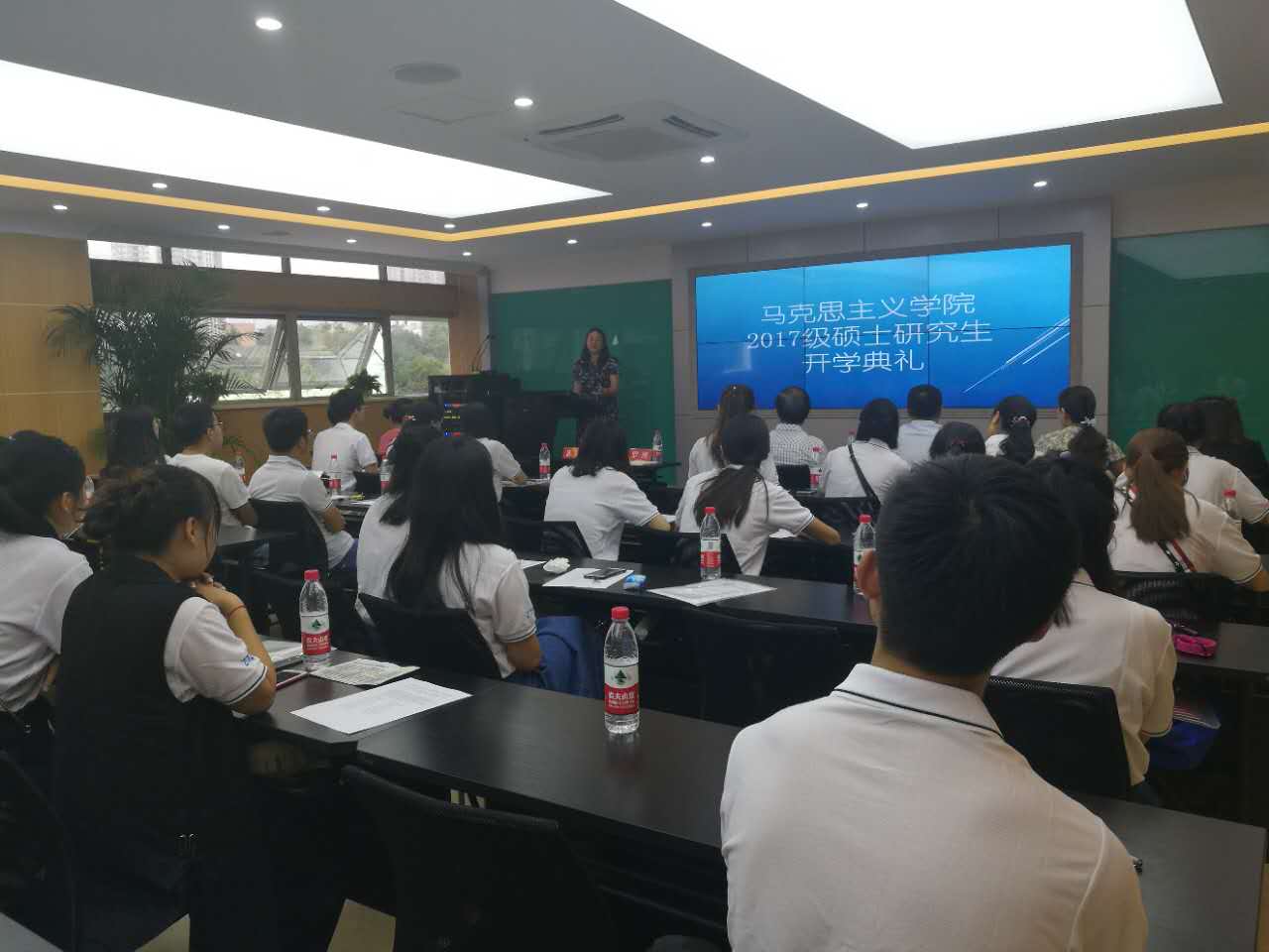 随后,学院各位领导陆续讲话。罗滌谈到,学生研究生三年要学会成长,要无愧于三年的学习生活,要学会规划自己的学习和生活。罗书记表示每个马院的学生都是马院整体形象的代表,因此,她要求新生要有过硬的政治信仰,要有责任,有担当,有形象,她希望同学们要想清楚自己的人生目标,争取以后成为社会栋梁。