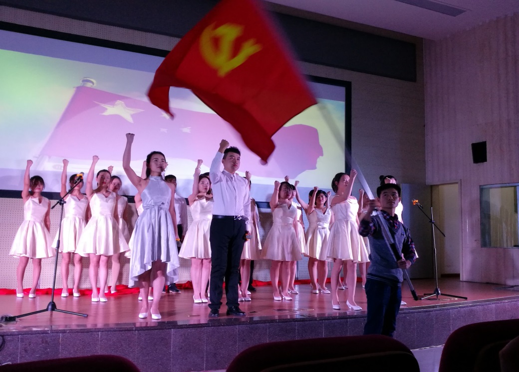 23名研究生用一首配乐诗朗诵《高举党的伟大旗帜》,深情缅怀了80多年前为抗日救亡高声疾呼的爱国学生,礼赞党的成长历程、正确领导和祖国取得的辉煌成就,朗诵获得了二等奖。