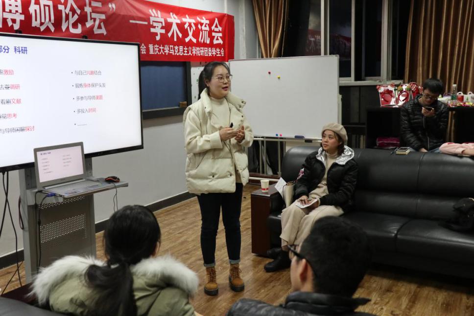 硕士研究生严芹在分享自己的学术经验时谈到:“科研学术不能闭门自编,要走出去多看看、多交流。”她将自己整理的马克思主义理论专业学术论坛信息与大家进行了分享,不仅涵盖了上海地区、北京地区、西南地区的论坛信息,还从论坛的使用注意事项为大家分享一些常见的“盲点”。她较强的信息搜集和汇总能力,不由得让大家发出“信息小能手”的称赞。