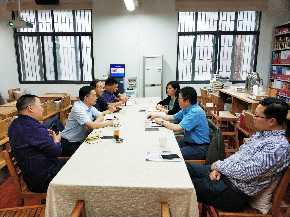 一行的到来,并介绍了学院的基本情况。其次,毛华兵教授详细介绍了学院的学科、科研,科研机构的设置情况,李芳重点交流了思政课教学中的集体备课,课堂考核方式改革相关举措。