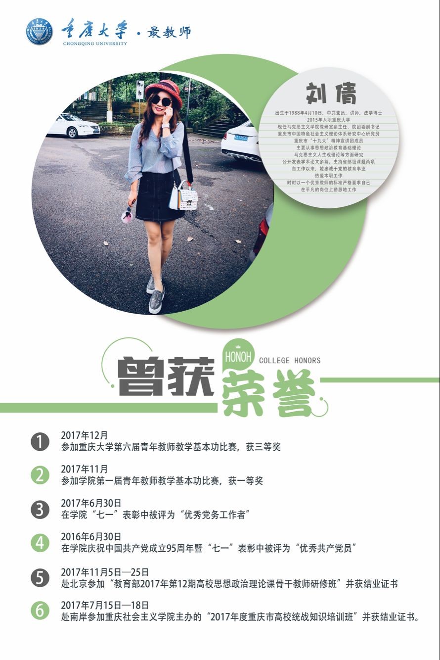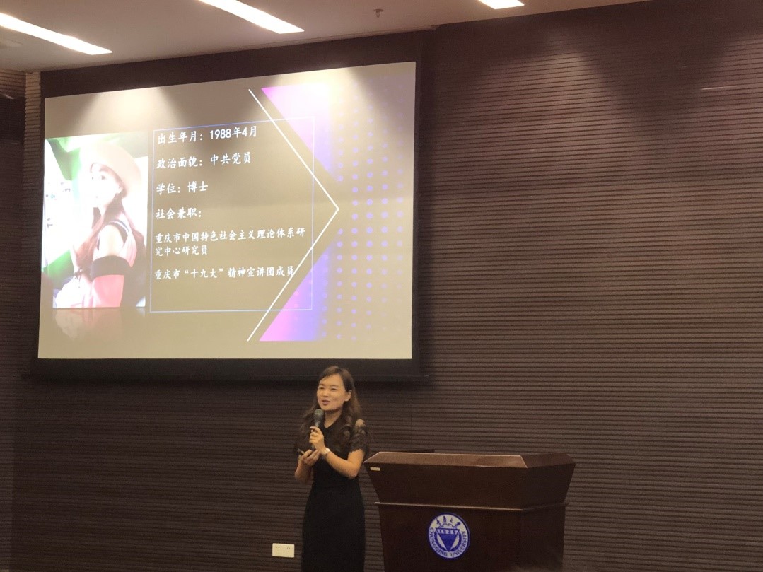 2018年6月7日下午,评选活动之公开展示环节在虎溪校区理科楼101报告厅举行,来自全校不同学院的十五位老师参加了公开展示环节。经过激烈的角逐,刘倩老师以深厚的理论底蕴以及精彩的演讲获得在座的教师评委与学生评委的青睐,最终喜获色戒