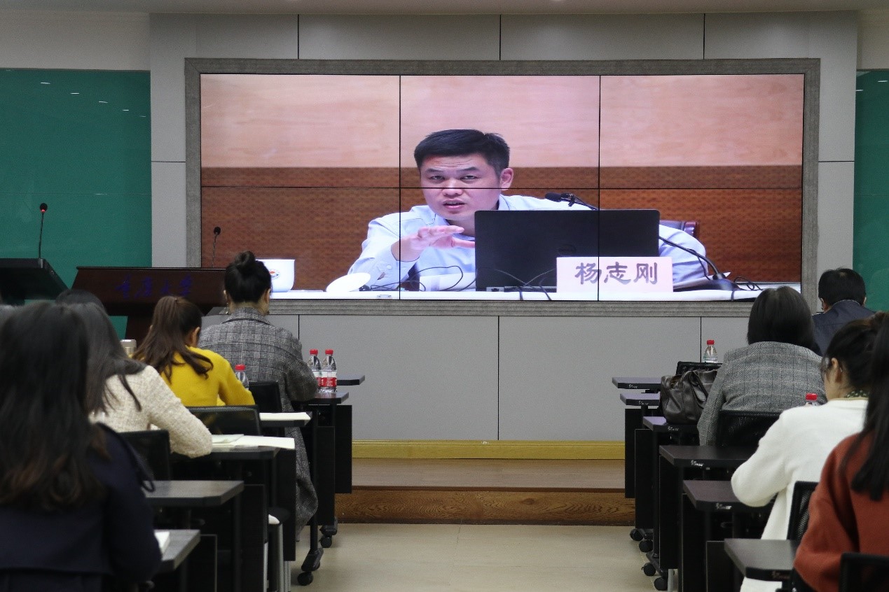 杨志刚副司长简要回顾了前四次全国教育工作会议的内容,分析了近年来教育工作发生的变化及教育工作的政治走势,通过充分认识全国教育大会的重要意义、深入学习领会习近平总书记关于教育的重要论述、扎实推进加快教育现代化的重点任务、全力确保教育大会精神落地落实,他从理论和实践、历史和现实、国际和国内相结合的高度,全面、系统、深入解读了2018年全国教育大会精神。