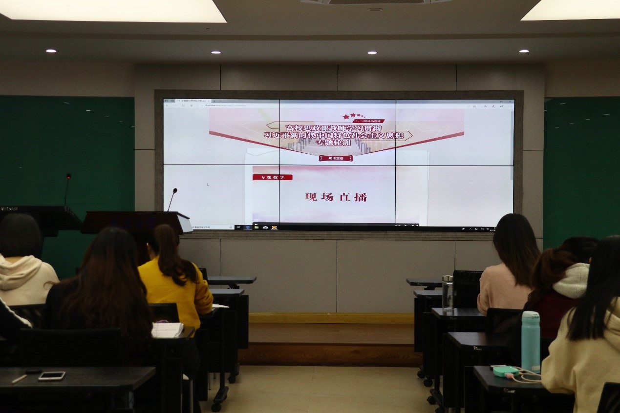 百余名师生在学院408会议室举行学习会,通过全国高校思政课教师网络集体备课平台观看了政法司副司长杨志刚作的“学习贯彻全国教育大会精神辅导报告”。