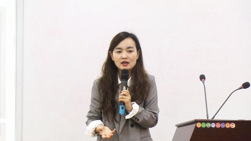 蒋荣老师根据其多年的授课经验对同学们进行了指导。她认为在选题方面要选择自身能够驾驭、能够做到让学生理解的理论知识,同时还能获取到可以证明该理论的独特的资料,通过思考社会热点中含有的理论,把社会现象上升到理论高度和深度。在备课方面,蒋老师认为应该做到对所讲授内容思路清晰、逻辑清楚,同时还要学会对自己课堂的形式进行包装。在课堂展示方面,蒋老师谈到,一堂好的思政课要做到激情、自信和亲和力相结合,这样对于课堂上可能出现的问题以及突发事件也能够应付自如。
