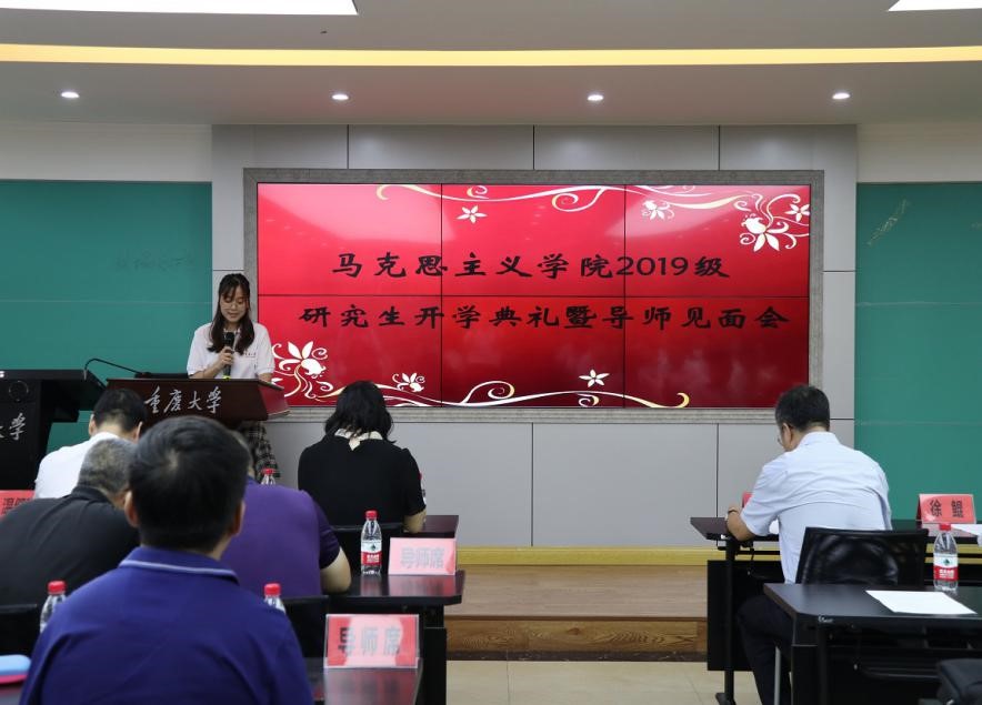 党委书记罗滌、院长张邦辉、副院长徐鲲、副院长吕进出席会议,部分研究生导师以及2019级全体研究生参加了典礼。大会由学院党委副书记温健琳主持。
