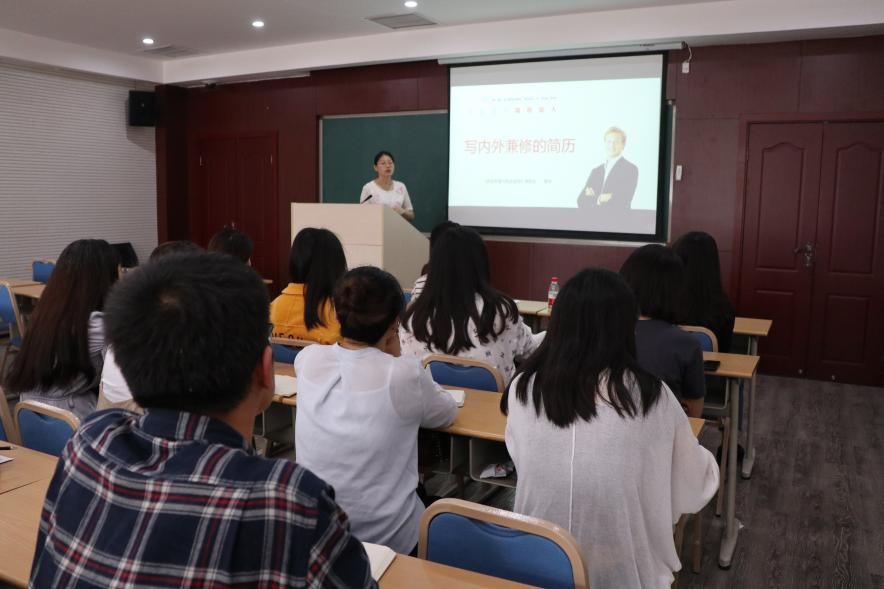 为帮助2020届毕业生制作出能够彰显各自特点、提高求职竞争力的简历, 色戒 特邀色戒 《职业发展与就业指导》课题组教师高洁为同学们进行简历制作专题讲座,讲座于2019年9月27日下午在学院508教室举办,2020届全体毕业生参加了讲座。