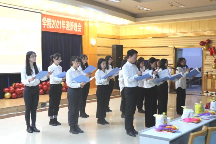 领导班子、部分教职工及全院学生欢聚一堂,共迎新年。