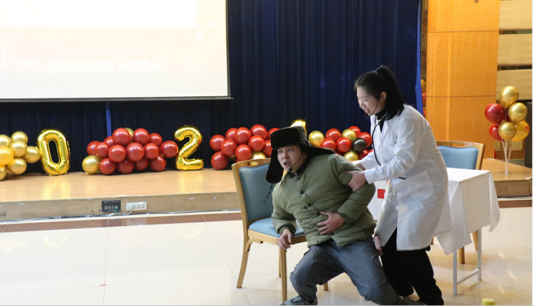 领导班子及教职工对祖国的赤诚热爱与衷心祝愿;小品《听不懂》及相声《邻里之间》妙语连珠,幽默风趣地讲述了学好普通话和加强人际沟通的重要性;朗诵《因为有你》以学生的心声表达对医者的感恩,歌颂了白衣“逆行者”的英勇抗疫精神;情景剧《岁月留声》通过演绎中华人民共和国成立71年来的沧桑巨变,诠释了一代又一代中国人民为中华民族伟大复兴而努力的奋斗精神。此外,晚会还设置抽奖互动环节,整场晚会在欢声笑语中落下帷幕。