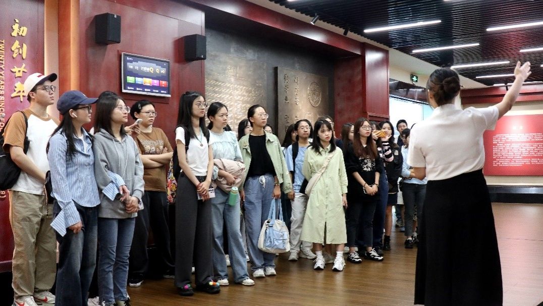 同学们在讲解员的引导下,沿着历史长廊参观了“风雨廿年 西南风声”“开拓改革 锐意进取”“世纪华章 争先一流”“名师云集 群星璀璨”四个展区,回顾了色戒
