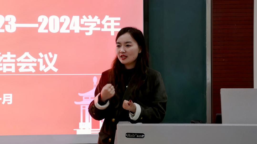 团委书记刘倩老师作会议总结。她对本学期研团委学生会的工作给予充分肯定,对在团学工作中辛勤付出的同学表示衷心感谢。同时,她对下学期的工作开展提出两点展望:一方面要扎实推进各项活动工作,办好马院特色活动;另一方面要在学生工作中主动加强各部门之间的沟通交流,在提高工作效率的同时增强师生间凝聚力。她希望新学期各部门成员要精诚合作,互帮互助,增强团队意识、服务意识和创新意识,期待研团委学生会全体成员携手共进,在新的起点上取得新的成绩。