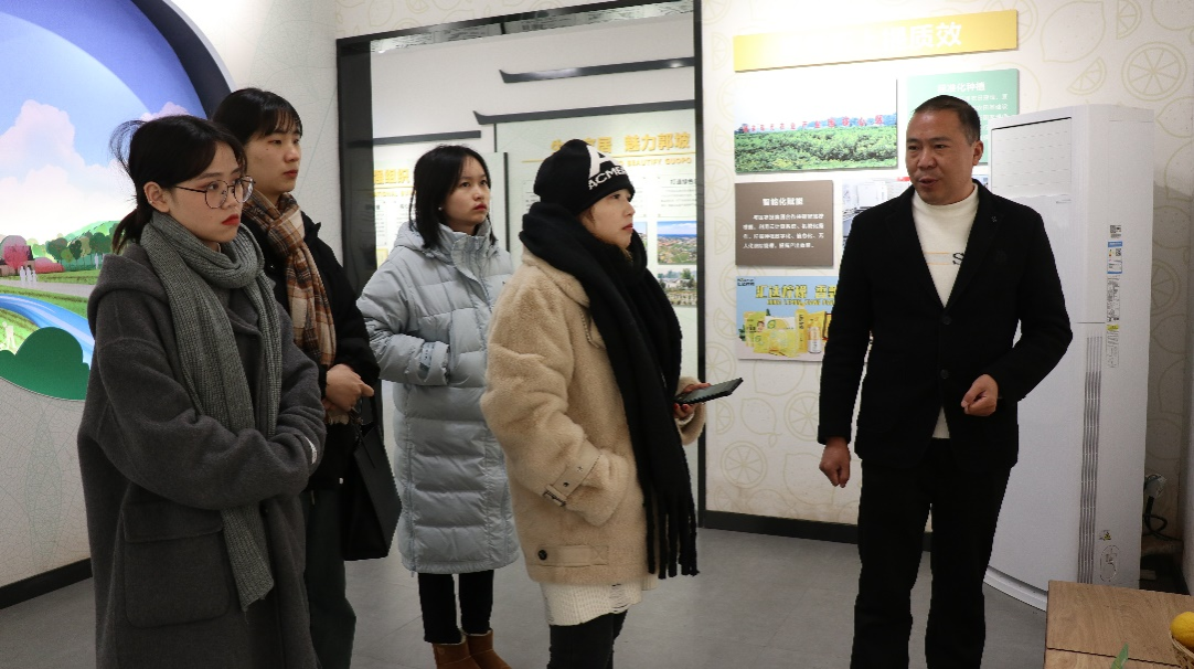 实践团来到重庆檬泰生物科技有限公司,公司研发负责人与博士后工作站负责人刘雁成向实践团介绍了公司的柠檬六分离技术、果胶提取技术等重要技术突破成果,并展示了公司的柠檬精深加工产品和C端产品。