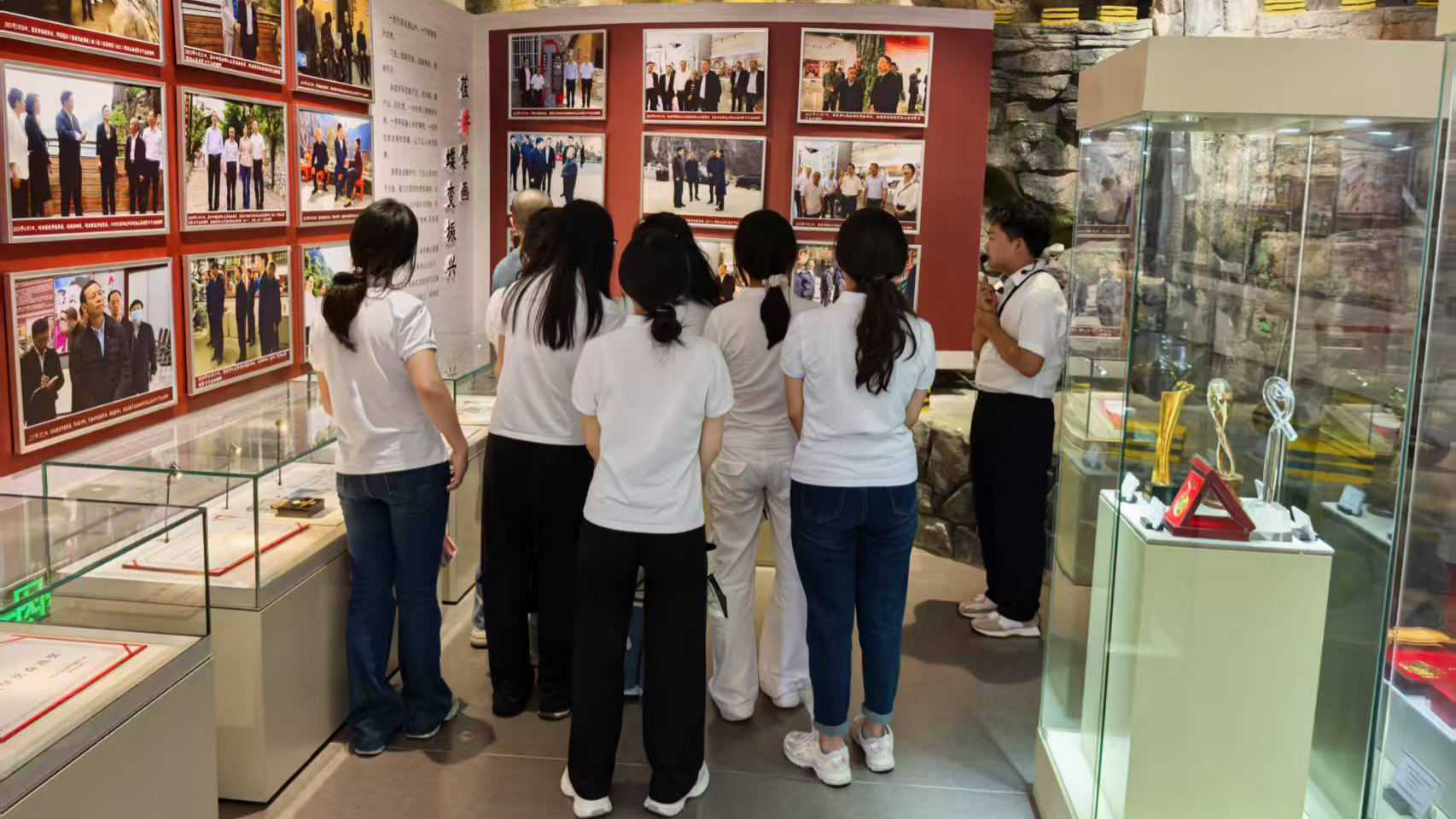 随后,在讲解员的带领下,实践团成员走进下庄人事迹陈列馆、愚公讲堂及村史馆。陈列馆内,锈迹斑斑的钢钎、磨穿底的胶鞋、泛黄的修路账本静静陈列。通过讲解员介绍,师生们了解到,为打通8公里绝壁天路,全村87户396人历时7年艰苦奋斗,更有6位村民献出了宝贵生命。实践团还观看了纪录片《下庄人》,影片以鲜活影像再现了下庄人从绝壁凿路到脱贫致富的奋斗史诗,让在场师生热泪盈眶。