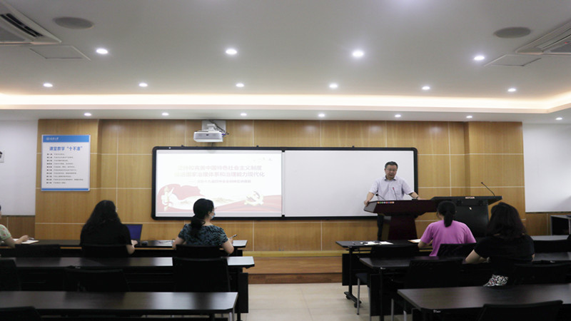 院长张邦辉教授在学院412教室为教工行政党支部讲了主题为“坚持和完善中国特色社会主义制度 推进国家治理体系和治理能力现代化——党的十九届四中全会精神解读”的专题党课,学院教工行政党支部全体党员认真聆听了专题党课。
