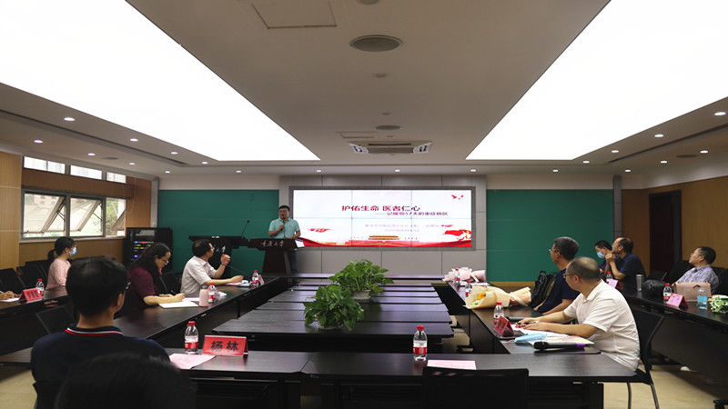 党委副书记温健琳同志首先代表学院对两位抗疫英雄的到来表示热烈的欢迎,并对学院的情况进行简要介绍。重庆市中医院急诊ICU姚勇刚同志以“护佑生命 医者仁心”为主题分享了援鄂57天的重症病区的经历。在分享体会时姚勇刚医生谈到在本次援助过程中感受到了老一辈医学专家如李兰娟院士的模范带头作用;感受到了医护之间精诚合作、医患关系前所未有的和谐;感受到了“一方有难、八方支援“的社会关爱;感受到了党和国家在抗击疫情过程中的责任与担当。