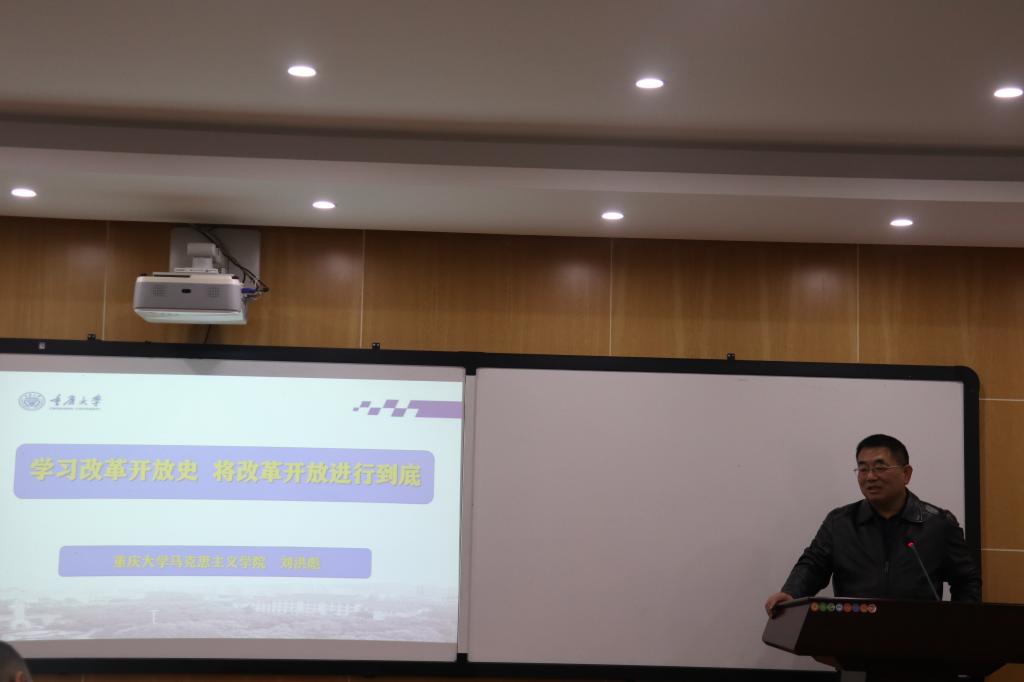 刘洪彪教授以“关系中国命运的历史性抉择”、“四十年改革开放的伟大成就”、“四十年改革开放的宝贵经验”、“将新时代改革开放进行到底”为主要内容,深刻阐述了“学习改革开放史 将改革开放进行到底”这一主题。刘洪彪教授从我们生活小需求的变迁得出了“四十年改革开放的宝贵经验”,并从“坚定信仰、信念、信心”、“继续坚持解放思想、实事求是”、“要埋头苦干,一棒接着一棒跑”等方面坚持讲新时代改革开放进行到底。