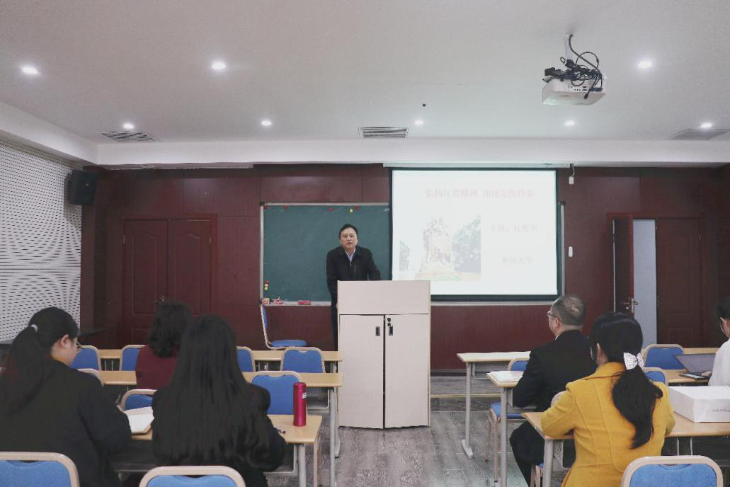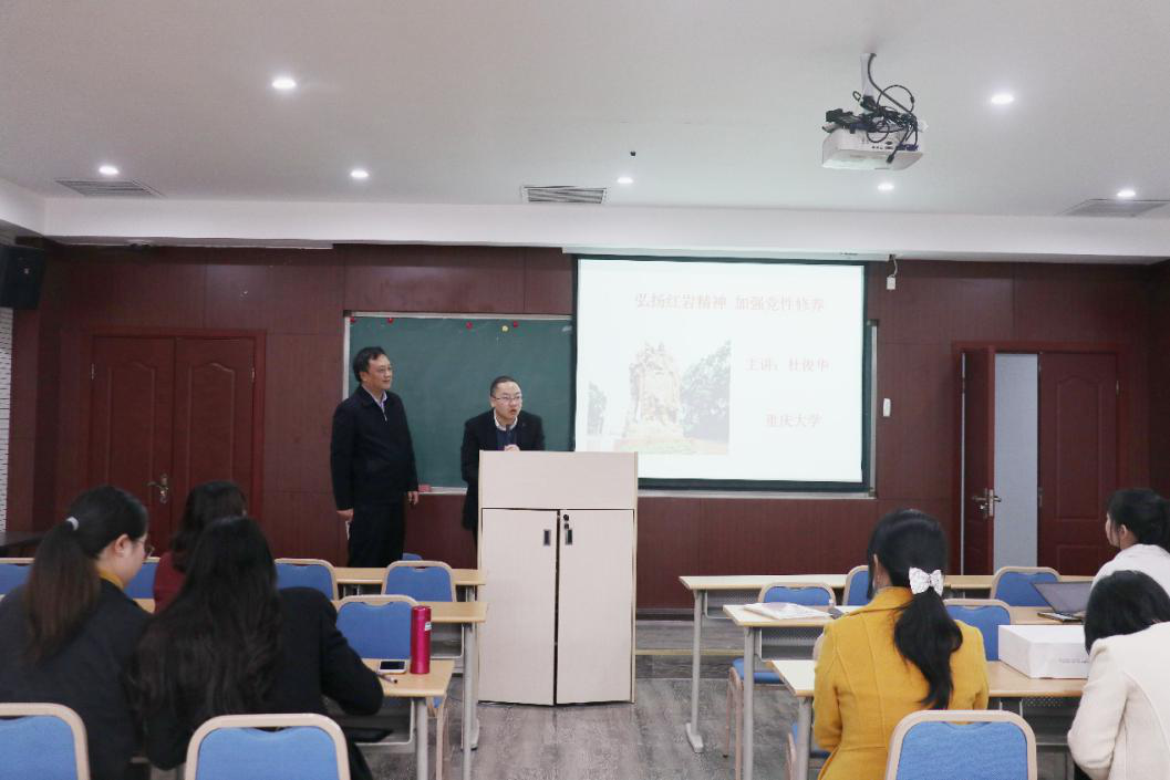 杜俊华同志以“弘扬红岩精神 加强党性修养”为主题为同志们作了精彩讲解,从宏观地阐释了红岩精神的形成及主要内容,以毛泽东、周恩来、阎宝航、肖林、沈安娜、韩子栋、刘国志等革命先贤的事迹,号召大家积极弘扬红岩精神,不断加强党性修养,坚定理想信念,积极投身于马克思主义理论学科的建设发展之中。