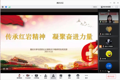 活动伊始,学院2019级研究生党部书记周志永老师在致辞中谈到,重庆和南京都是极具丰富红色资源的城市,各个时期在中国共产党的领导下涌现出了一大批理想坚定、视死如归、忘我奉献的英雄人物,熔铸了崇高的红岩精神和雨花英烈精神。通过联合开展此次主题党日活动,目的是引导研究生党员深入学习党史,传承红色基因,赓续精神血脉。并希望全体研究生党员不忘初心、牢记使命,为中华民族伟大复兴贡献力量。