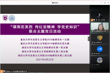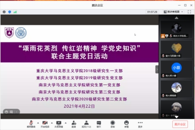 2018级研究生一支部、2019级研究生支部与南京大学多个研究生党支部联合开展“颂雨花英烈 传红岩精神 学党史知识”主题党日活动。活动由南京大学 色戒