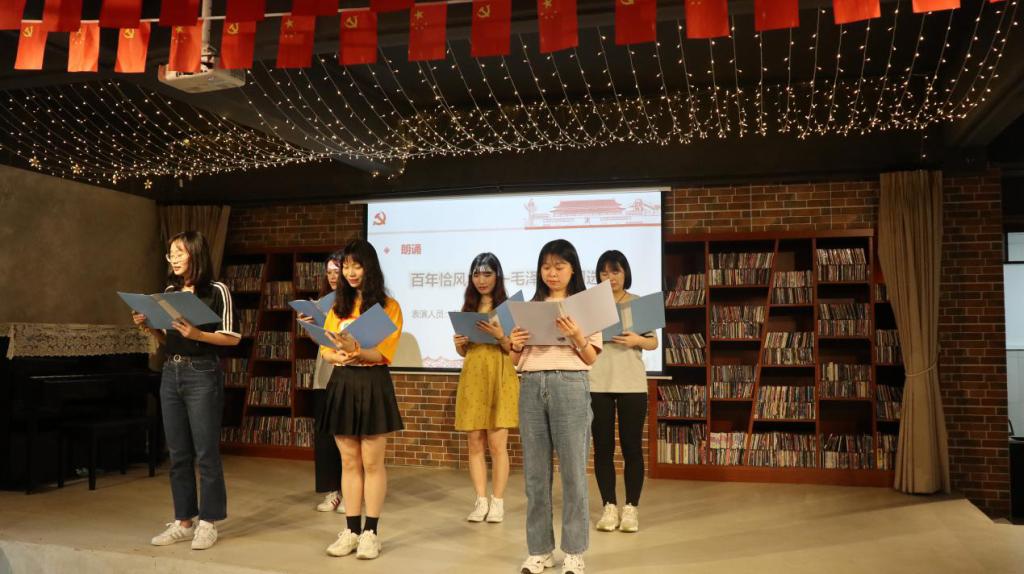 此次主题党团活动采用朗诵、情景剧、讲述党史故事和歌曲表演等形式,紧紧围绕着“庆祝中国共产党建党100周年”展开活动内容,生动讲述了党史故事、英雄事迹、红岩精神。活动在马雪丽、黄家佳等同学的朗诵《星星变奏曲》中拉开了序幕;简佳密同学和吴玉娟同学分享了“中共八大元老”之一李先念的故事,展现了李先念的革命豪情,表达了对他的深切怀念;雷洪鸣、周玲玉、高雅等同学表演了情景剧《迎春》,再现了周恩来在色戒