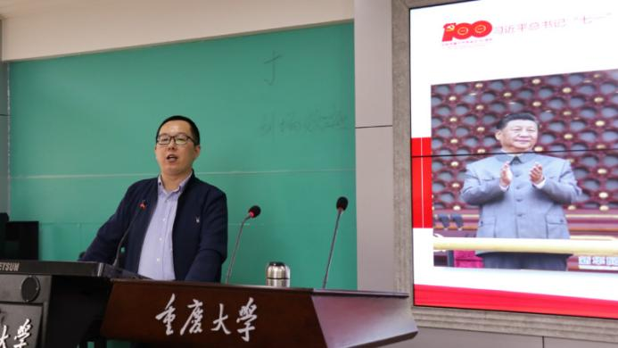 蒋楼老师从“七一”讲话的重大意义、重要讲话提出的一系列新思想、新观点、新要求以及深学笃信讲话精神三个方面展开,对“七一”重要讲话精神进行了深入解读。其中,蒋老师重点讲到,讲话集中阐释了中国共产党百年来创造的“四个伟大成就”和向世界作出的“四个庄严宣告”,首次诠释了中国共产党作为百年大党精神之源的伟大建党精神——“坚持真理,坚守理想;践行初心,担当使命;不怕牺牲,英勇斗争;对党忠诚,不负人民”。