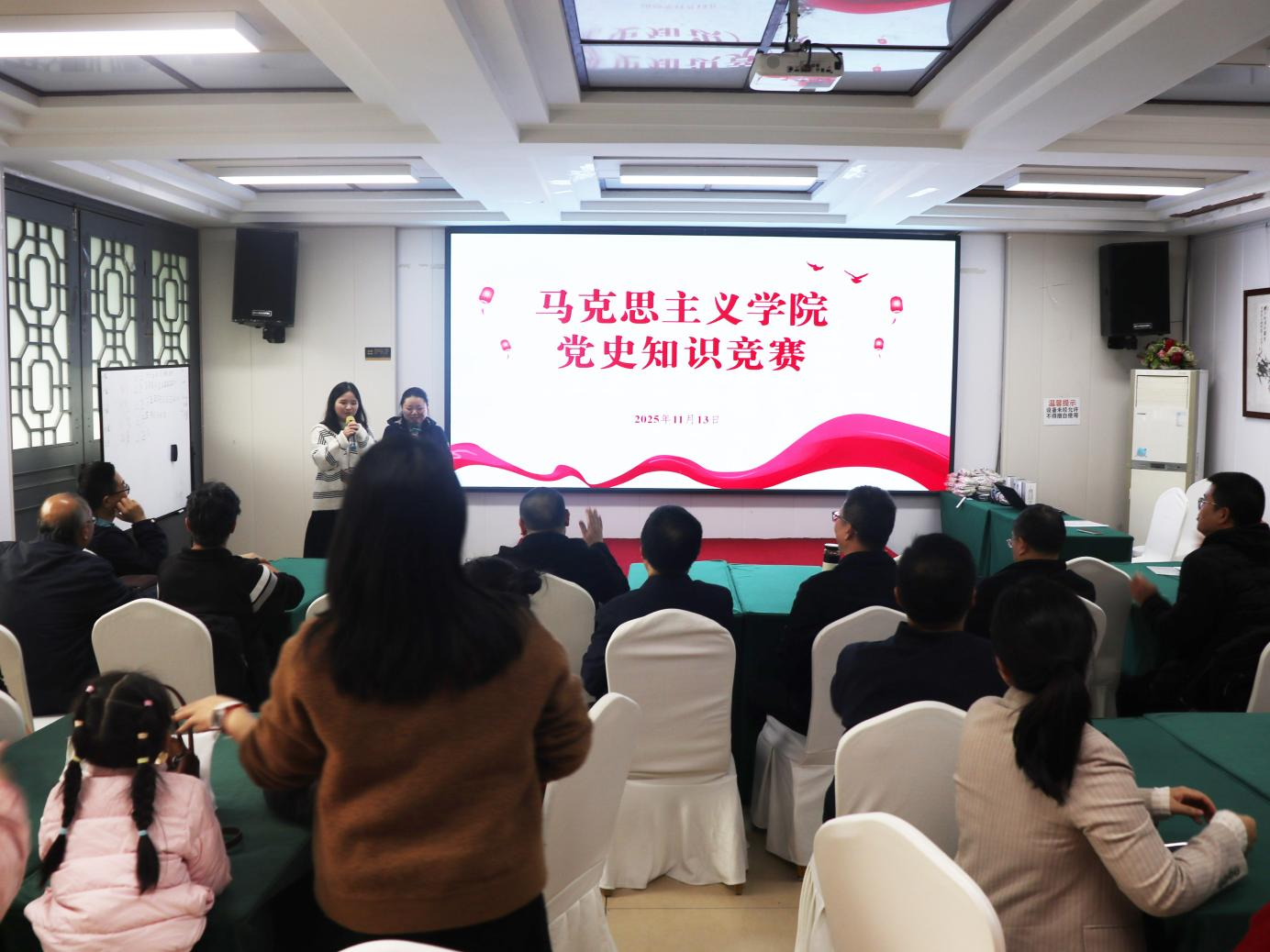成功举办以“学党史、守党纪、促发展”为主题的党史知识竞赛。此次活动旨在深入学习贯彻党的二十届四中全会精神,扎实推进党史学习教育常态化长效化,引导全院教职工党员从党的百年奋斗历程中汲取智慧和力量。学院党委书记谢昭明、副书记袁利、副院长徐鲲出席活动,全院共32名教职工积极参与竞赛。