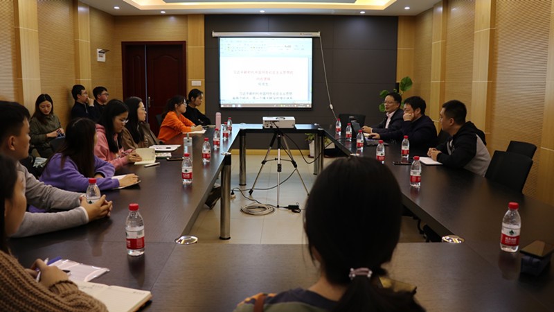 何虎生教授作题为“习近平新时代中国特色社会主义思想的内在逻辑”的学术讲座,讲座由学院副院长徐鲲主持。学院部分老师和研究生聆听了讲座。