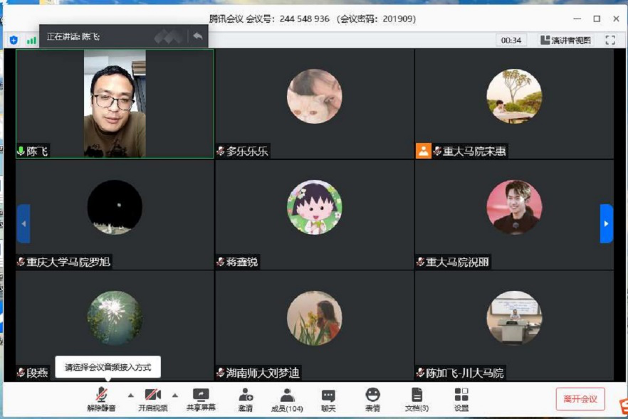 副教授陈飞在小程序--“腾讯会议”作了题为“寻论文写作选题 研论文写作方法”的线上讲座,色戒