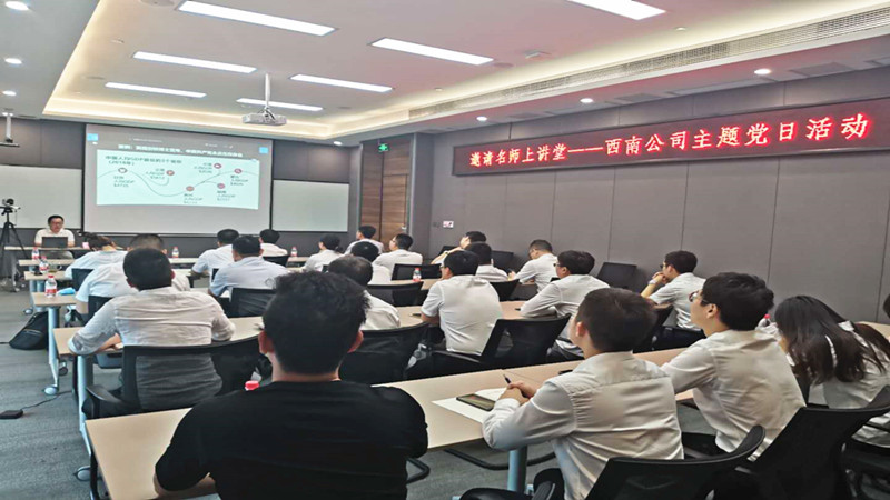 马克思主义基本原理教研室党支部书记蒋楼应邀赴中建八局二公司西南公司宣讲2020年两会精神。该公司党支部书记景东及全体职工党员50余人在现场参与学习,并有60余名职工党员通过视频直播的方式参加了学习活动。本次宣讲是该公司党支部“邀请名师上讲堂”系列主题党日活动之一。