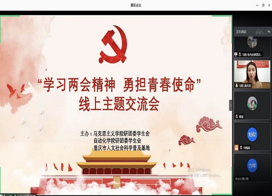 和自动化学院联合举办了“学习两会精神 勇担青春使命”的线上主题交流会。本次交流会在腾讯会议开展,两院共100余名研究生同学参与。会议由 色戒