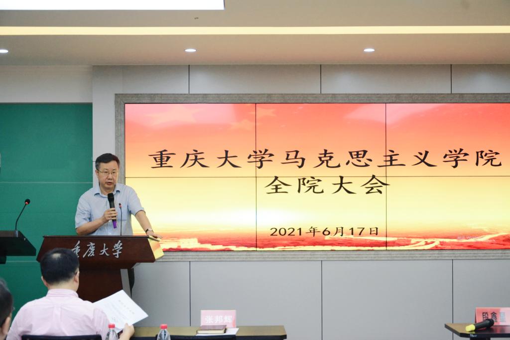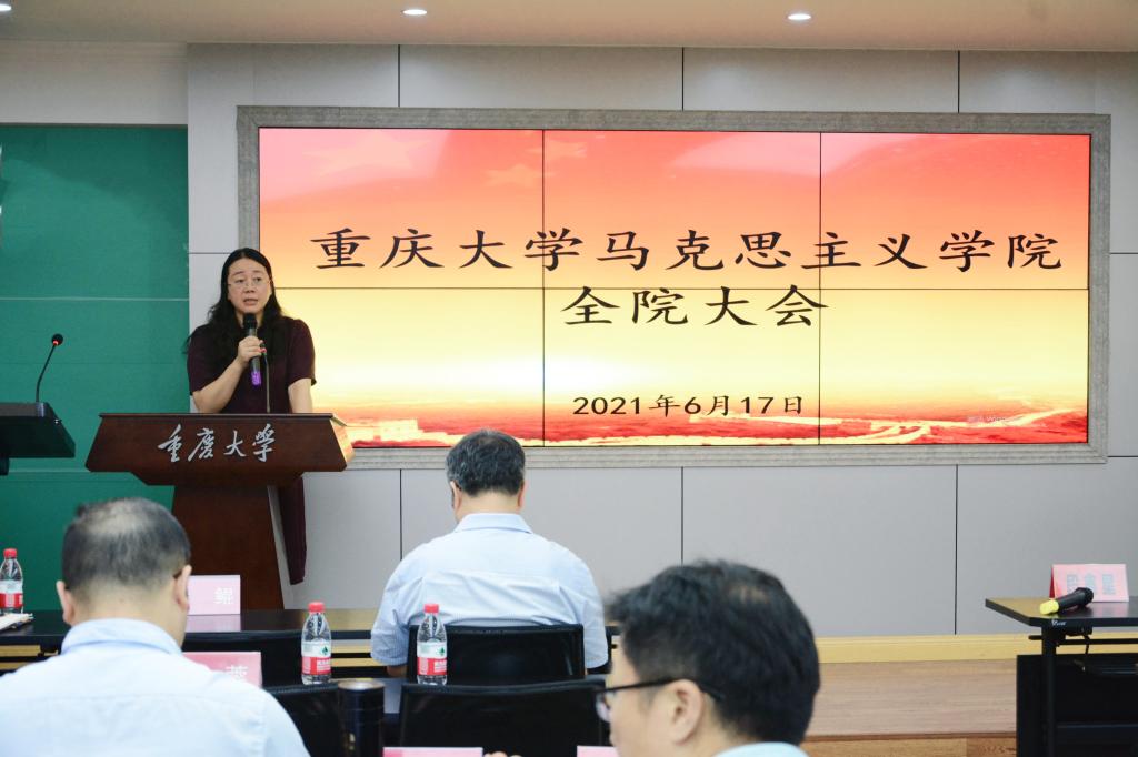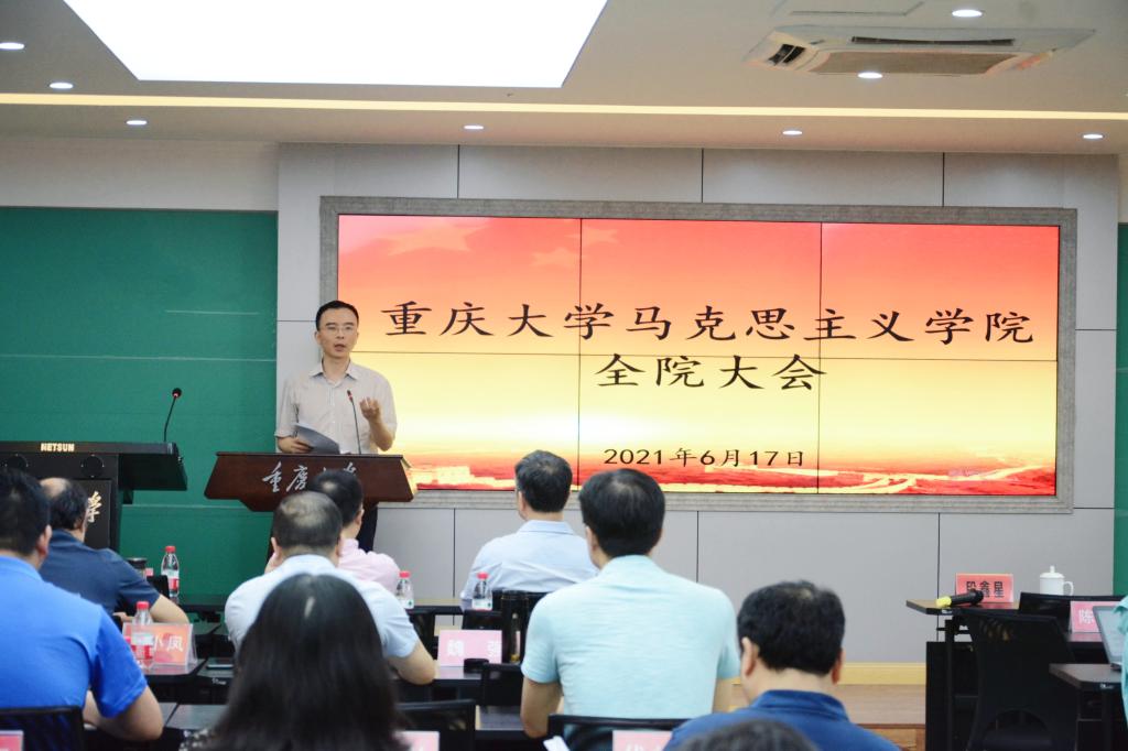 2021年6月17日下午,学院在408会议室召开全院教职工大会,学院领导班子、全院教职工参加会议,会议由党委书记罗滌主持。
