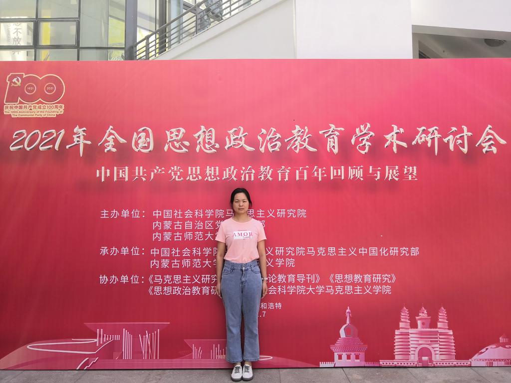 2019级硕士研究生完瑞红应邀参加,在何跃教授指导下,完瑞红撰写的《建党百年青年理想信念教育的理论依据、实践原则和基本经验》一文,经9位专家评审,入选本次学术研讨会。