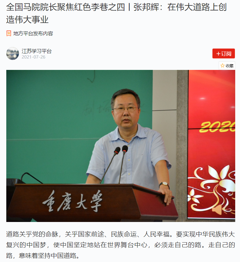 院长张邦辉《在伟大道路上创造伟大事业》一文,引发强烈反响,文章首先写到:“道路关乎党的命脉,关乎国家前途、民族命运、人民幸福。要实现中华民族伟大复兴的中国梦,使中国坚定地站在世界舞台中心,必须走自己的路。走自己的路,意味着坚持中国道路。”