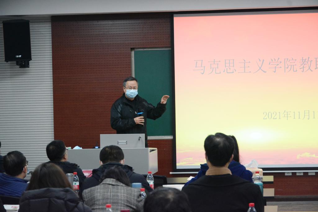 副院长吕进就《关于组织开展“七一”重要讲话精神、“四史”学习教育及弘扬红岩精神专题研究阐释工作的通知》《关于做好2022年国家社会科学基金项目申报有关工作的安排》文件精神进行了传达,要求各教研室、各位老师积极参与,切实围绕深化习近平新时代中国特色社会主义思想的研究,积极开展有学理深度和学术厚度的研究阐释。针对2022年国家社会科学基金项目申报有关工作,建议各位申报者开始初稿的撰写,学院会邀请校内外专家开展基金项目申报专题辅导,提出进一步完善意见。