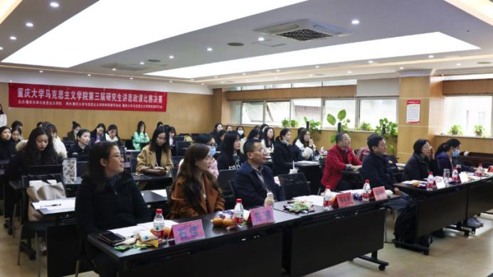 “扬时代新风貌,引教学新风范”第三届研究生讲思政课比赛决赛在学院408教室顺利举行。在初赛中脱颖而出的15位选手,再次登上讲台,演绎生动一课。学院院长张邦辉及学院部分师生观摩此次比赛。张德昭、张礼建、肖云等来自各教研室的8位老师担任本次大赛评委,另有20位研究生担任观众评委。比赛由2021级研究生张倩主持。