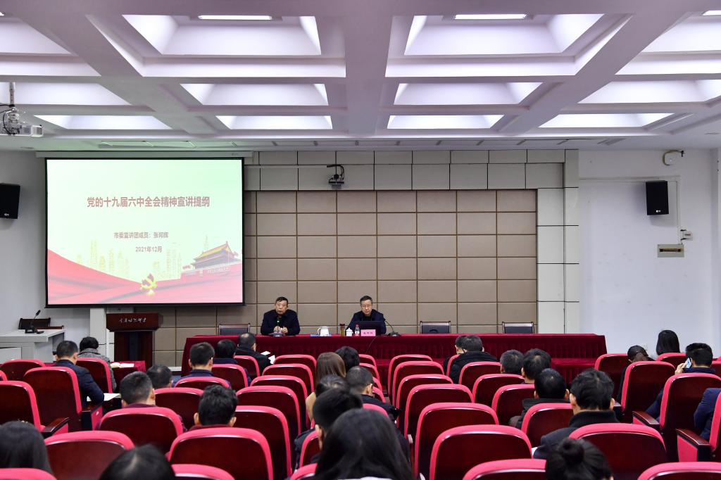 12月8日,重庆市机关事务管理局举办深入学习贯彻党的十九届六中全会精神宣讲报告会暨传达学习贯彻市委五届十一次全会精神专题会,张邦辉作宣讲报告,重庆机关事务局党组领导班子成员,全体干部职工,基层单位领导班子成员参加会议。张邦辉从深刻认识总结党的百年奋斗重大成就和历史经验的重大意义、深刻认识党的百年奋斗的初心使命和重大成就、深刻认识中国特色社会主义新时代的历史性成就和历史性变革、深刻认识党的百年奋斗的历史意义和历史经验、深刻认识以史为鉴、开创未来的重要要求,以及从党的百年奋斗历程中汲取智慧和力量等六个方面,全面深入系统地解读了党的十九届六中全会精神的重要意义和丰富内涵,为纵深推进全会精神宣传学习贯彻提供了很好的帮助,有益的启发。