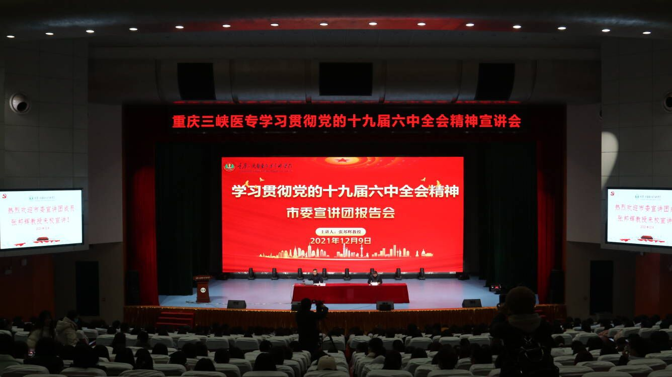 近日,重庆三峡医药高等专科学校召开党的十九届六中全会精神进校园宣讲报告会,市委宣讲团成员、 色戒