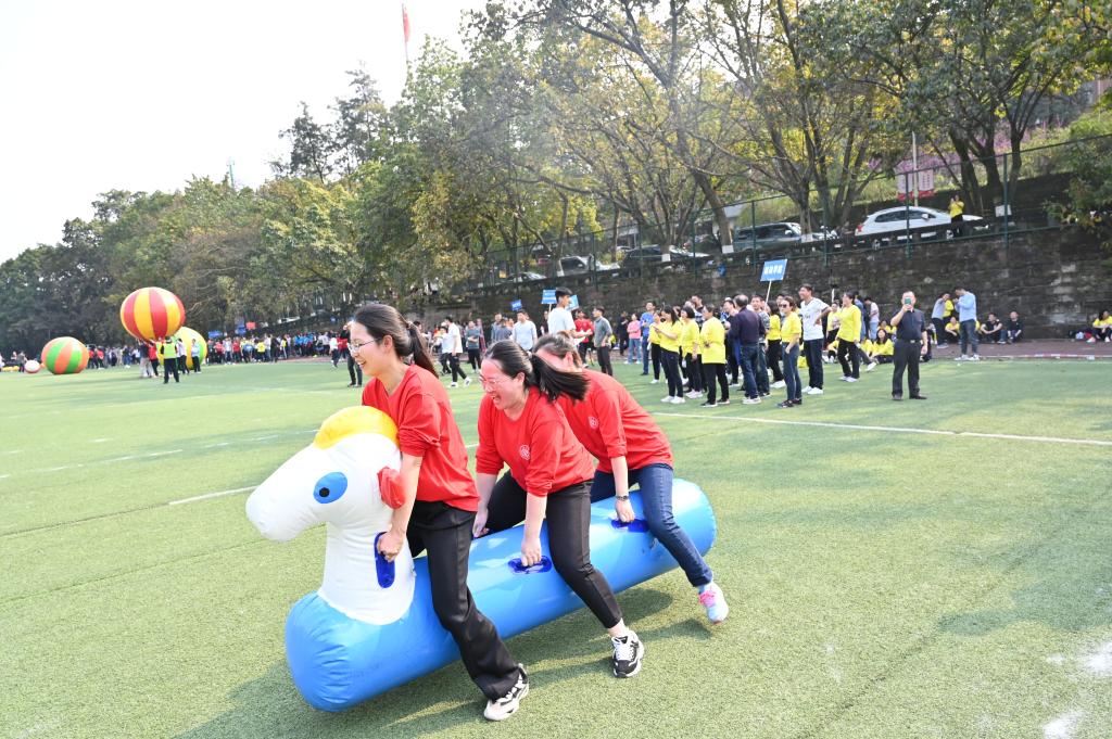 在趣味运动会中,学院老师们合理分组,分工参与,在享受趣味运动的乐趣中欢声笑语,并且在“播种希望”项目中获得二等奖,在“财源滚滚”项目中获得三等奖。当天赛场上,欢声笑语此起彼伏,通过活动,大家不仅加深了同事间的感情,也放松了心情,舒缓了压力。