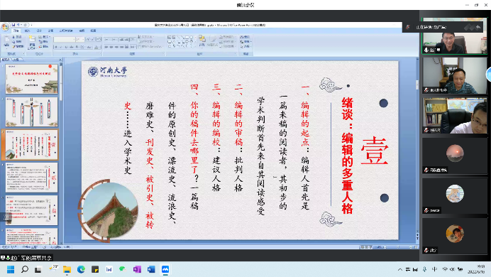 赵广军围绕“史学论文选题与刊文规范”这一中心展开讲解。首先,他从“编辑部的故事:编辑的多重人格”入题,围绕“如何写出编辑喜欢的文章”这一中心展开讲解。接下来,他指出学术论文写作选题应当避免的三大不良倾向,第一,选题时要避免高度同质化倾向,应当通过大量的阅读、借鉴来构建自己的文章框架,从内容、研究思路和结论观点三方面寻求突破;第二,避免选题碎片化倾向,赵广军从个案化稿件与理论泛化稿件的关系入手,指出史学研究碎片化现象无法消除,但作为期刊可以改变,并说明了要以“小处着手,大处立脚”的方法来解决个案化现象;第三,避免研究内容空泛化倾向,他强调,史学论文以述为主,以论提升,应当避免“浅析”“浅论”“刍议”等表述。在行文规范方面,赵广军对标题、摘要、关键词、绪论、框架结构这五个论文主要部分展开详细论述,他认为标题是最亮眼的,摘要是最精彩的,框架结构是否自洽是一篇好论文的关键。