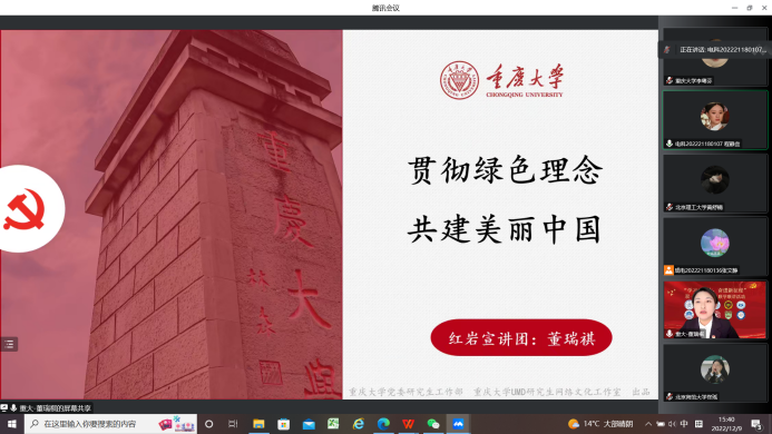 红岩宣讲团成员董瑞祺应邀参加“学习二十大,奋进新征程”双一流高校联学联讲活动,此次活动由北京师范大学、北京理工大学、色戒