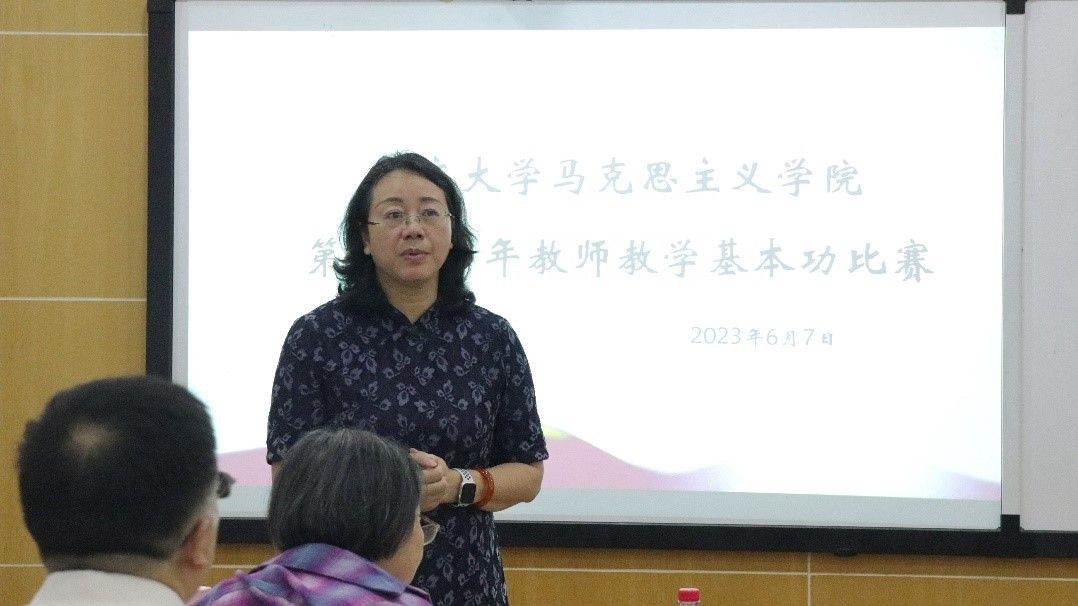 肖云对本次比赛进行了点评,她指出青年教师们的课程十分生动、充满激情、教学方式各具特色。同时她也从课程设计、教学内容、教学手段、师生互动等方面对青年教师提出了中肯的建议。