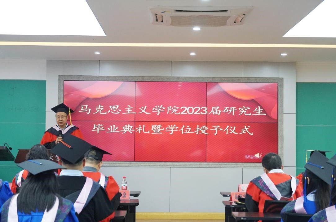 的发展历程以及近年来取得的成绩。他鼓励毕业生们在未来的征途要做到“守正创新”,谨记自己是马克思主义理论的研究生,提升自己的综合素质,在工作岗位上发挥自己的专业特长,牢记“马院姓马,在马言马,建设祖国,一马当先”。最后,他祝福2023届毕业生们前途似锦,以饱满的干事热情、昂扬的奋斗姿态,开启人生新征程,谱写人生新篇章!