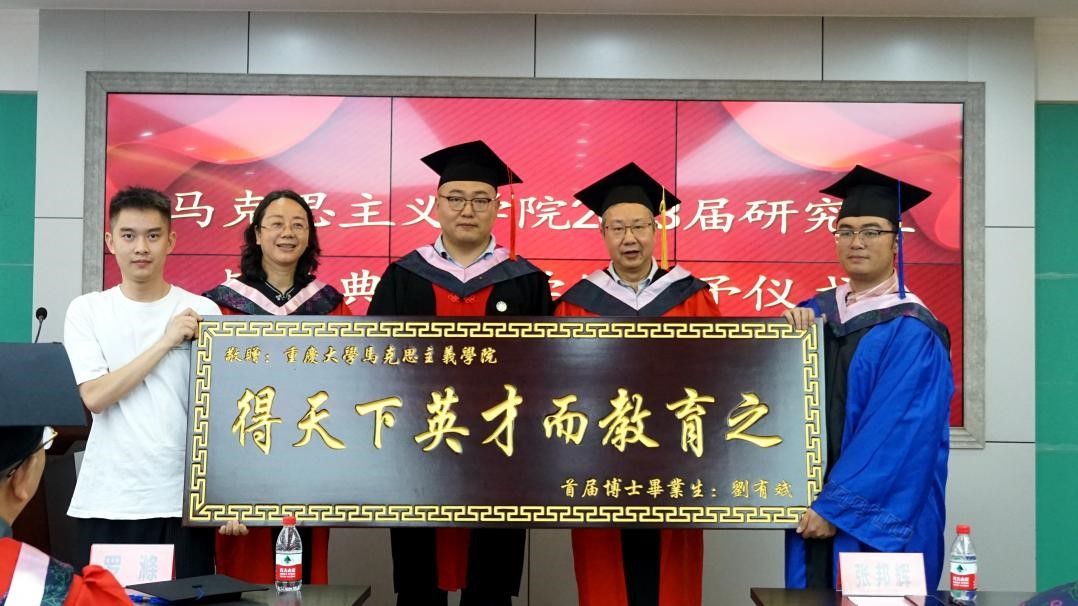 随后,与会领导和导师代表为2023届博士毕业生和硕士毕业生拨穗并颁发学位证书。博士毕业生刘有斌向学院赠送了题为“得天下之英才而教育之”的牌匾以表达对学院的感激之情。