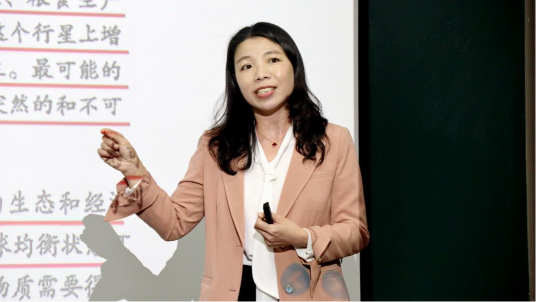 第一位参赛教师是来自重庆工商大学的张丽老师,她围绕“生态自然观视野中的生态危机解决之道”这一主题进行课堂展示。她先以国际社会密切关注的“日本福岛核污水事件”为例进行课堂导入,接着通过概念辨析来重新审视人与自然的对象性关系,最后强调要在全球性生态危机的基础上进行理性反思,明确每个人在可持续发展中的角色。