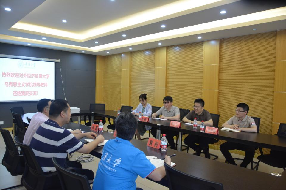 2024年5月20日,对外经济贸易大学 色戒 院长陶好飞、党总支副书记高磊、副院长黄传根、思想政治教育学系主任高蕾一行4人到 色戒 马院调研交流。交流会在马院414会议室举行,马院党委书记陈科、党委副书记 纪委书记袁利、副院长徐鲲参加座谈。