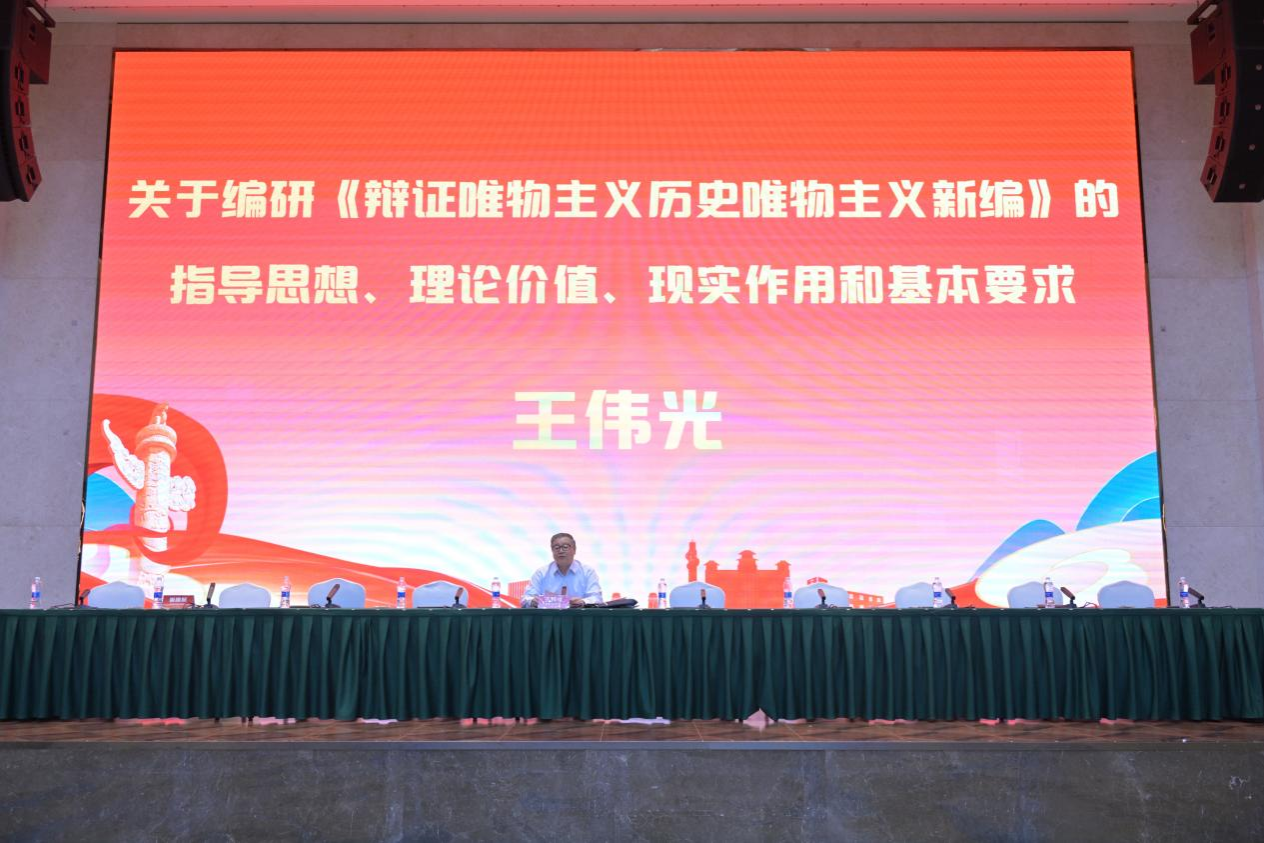 王伟光强调指出,编撰《新编》是在新的历史条件下进行辩证唯物主义历史唯物主义建设实践的迫切需要。当前,中国面临复杂多变的国际形势,肩负艰巨繁重的国内改革发展稳定重任,编撰一本经得起历史和实践检验的新时代辩证唯物主义历史唯物主义的教科书正当其时。《新编》是彰显新时代辩证唯物主义历史唯物主义与时俱进理论准则的必然要求。要对新的历史发展进程中所涌现的新问题作出新诠释,要从纷繁复杂的国际形势中把握当前世界的主要矛盾,正确理解和科学运用马克思主义哲学的阶级观点和阶级分析方法。《新编》是面向未来,开辟辩证唯物主义历史唯物主义中国化、时代化、大众化新境界的必然要求。《新编》力图对当代中国涌现出的新问题、新经验,特别是对中国特色社会主义的新发展、新成就,给予明确的概念解读和哲学认知。《新编》对歪曲和否定“马克思主义哲学就是辩证唯物主义历史唯物主义”的科学性,企图通过割裂辩证唯物主义历史唯物主义的内在联系来达到否定的目的进行严肃批驳,坚定地维护辩证唯物主义历史唯物主义的科学地位,深入揭示其内在逻辑联系和现实作用。