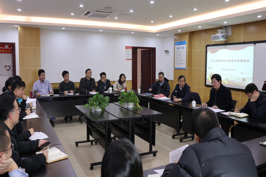 社科处处长袁文全教授对项目申报进行指导。学院院长张邦辉、副院长徐鲲、副院长吕进及学院部分教师参加会议。